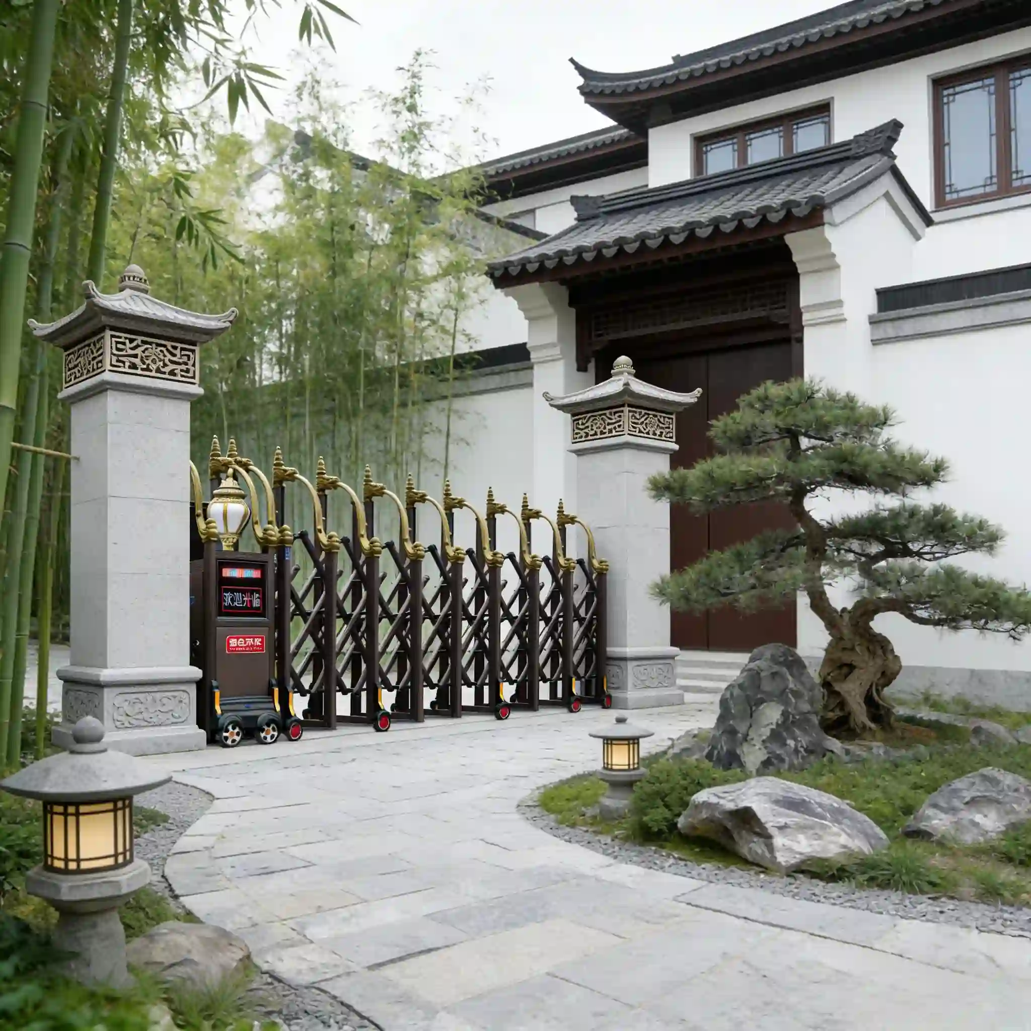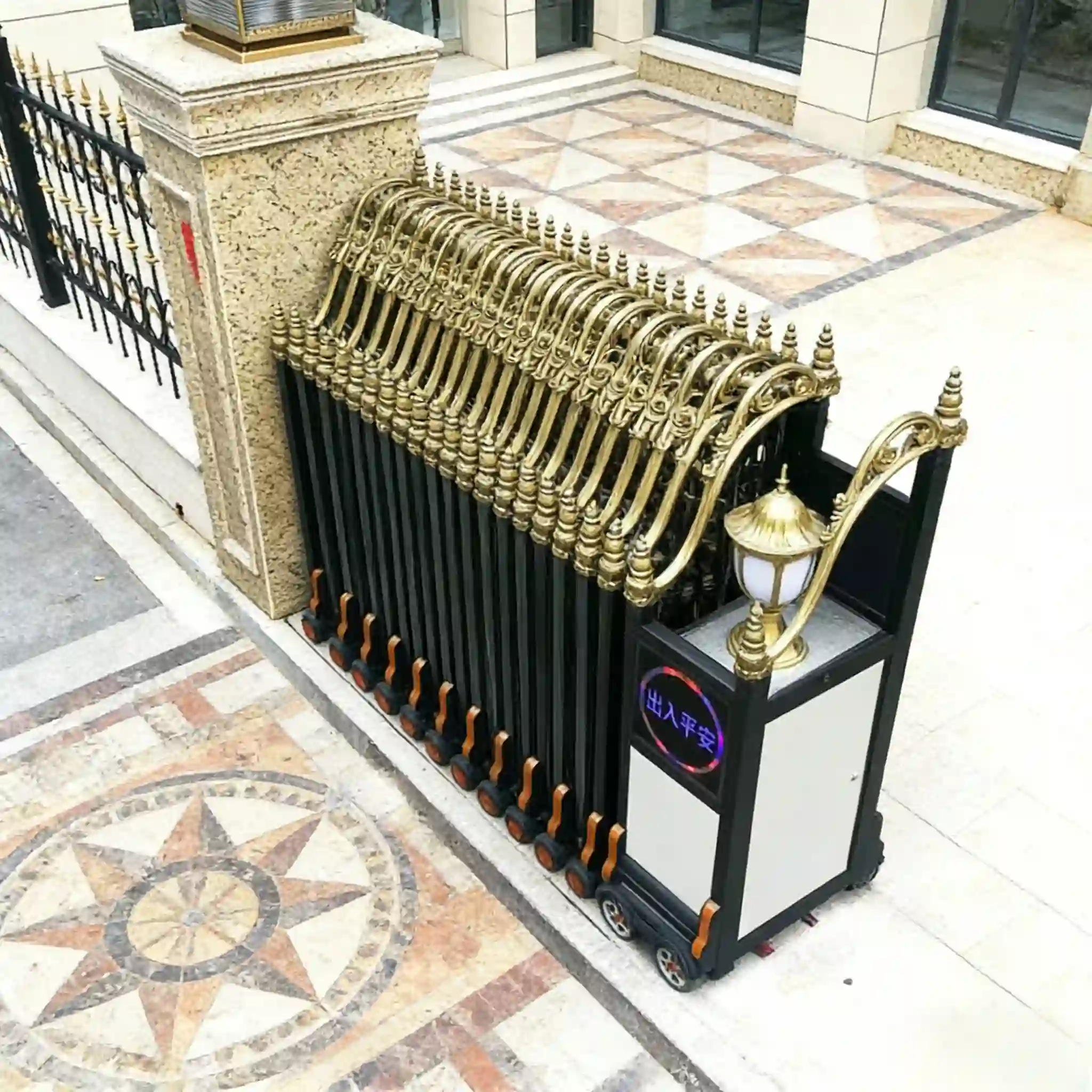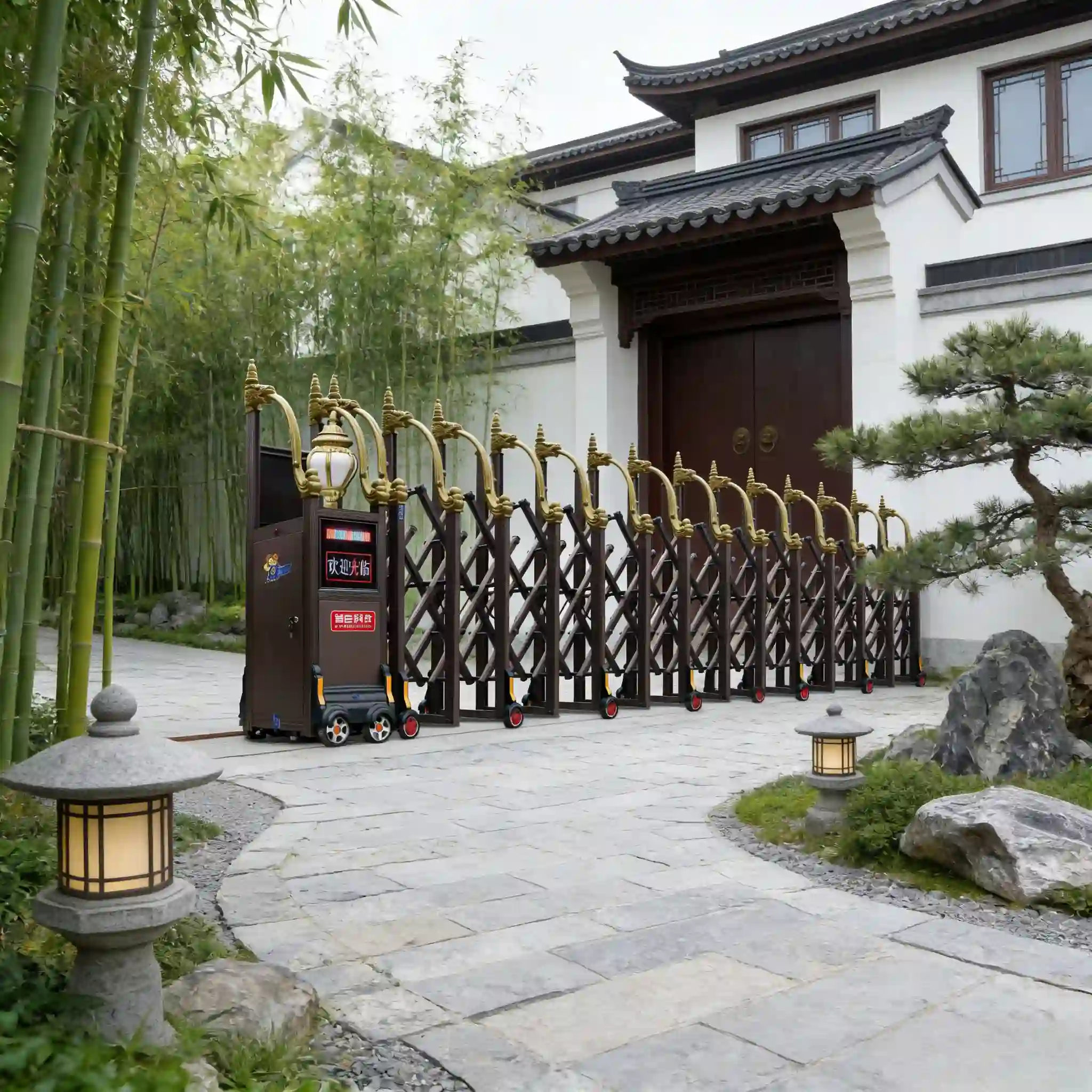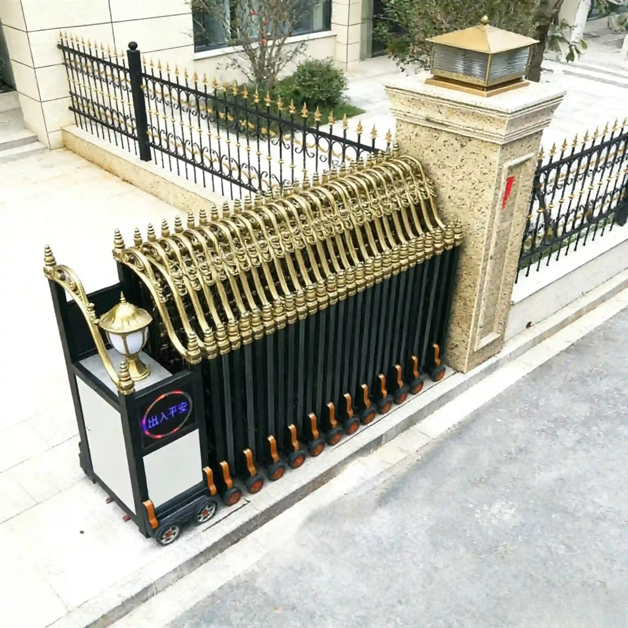 Elevate your property's security and aesthetics with our high-end luxury electric retractable gate—engineered for factories, enterprises, schools, parking lots, and other B-end scenarios. Crafted from premium aluminum alloy, this trackless sliding/folding gate combines robust performance, sleek design, and intelligent operation, delivering a seamless blend of safety, convenience, and luxury.