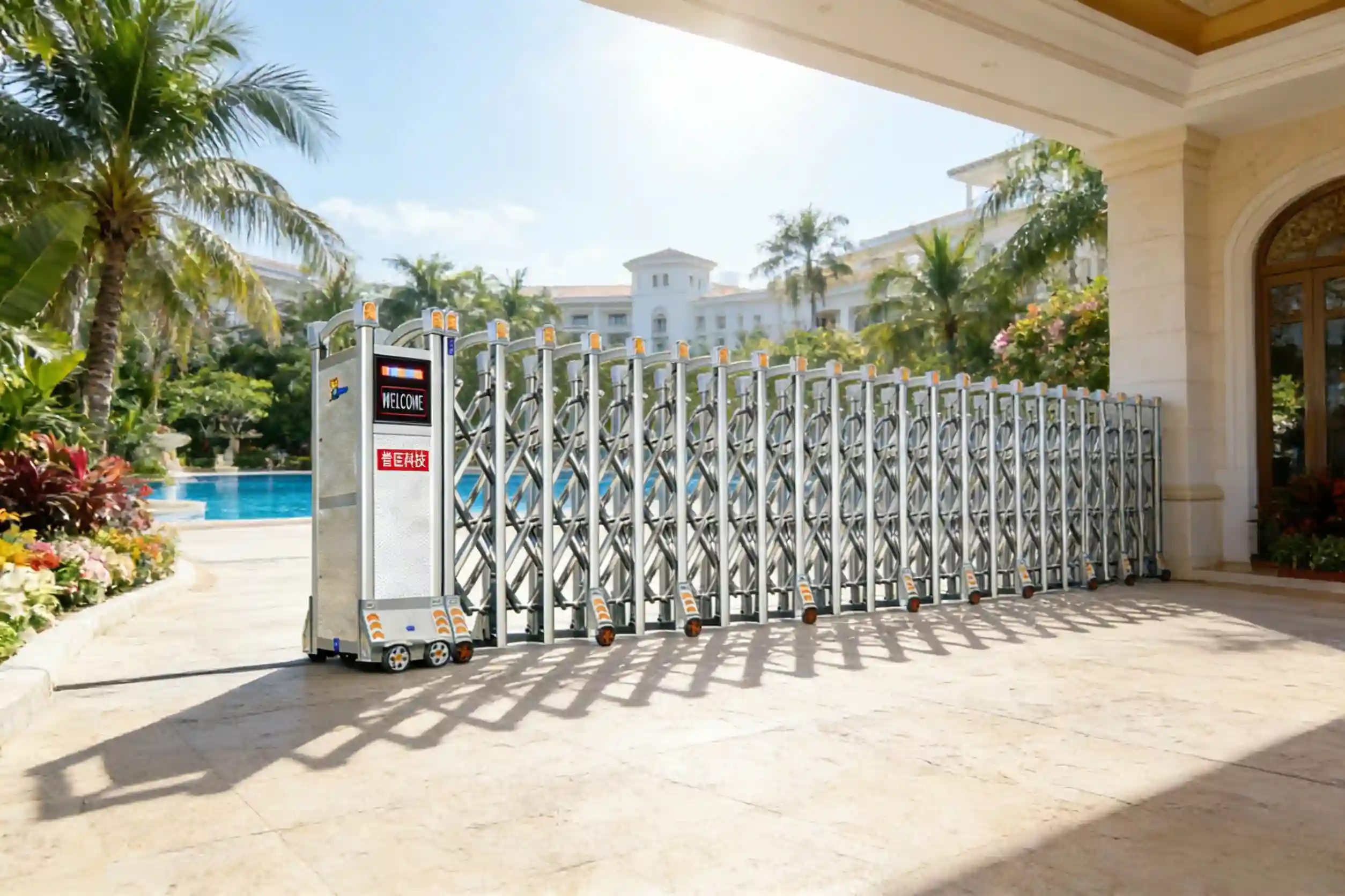 Elevate your property's security and aesthetics with our high-end luxury electric retractable gate—engineered for factories, enterprises, schools, parking lots, and other B-end scenarios. Crafted from premium aluminum alloy, this trackless sliding/folding gate combines robust performance, sleek design, and intelligent operation, delivering a seamless blend of safety, convenience, and luxury.